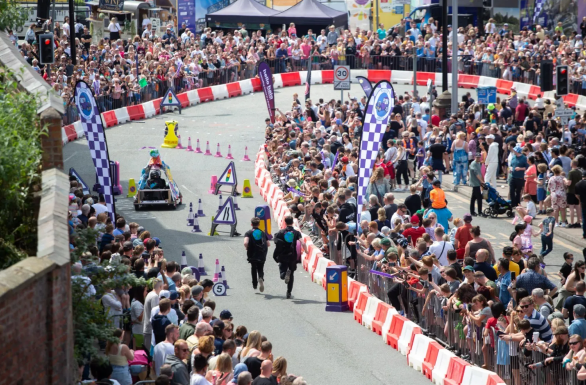 There are two awards up for grabs: Best Dressed and Best Showmanship. Previous years have featured soapboxes and costumes inspired by everything from a Ghostbusters Ectomobile, a tree trunk, a shark and a Robinson’s brewery bottle, to name a few. It’s this mix of creativity and chaos that keeps crowds coming back year after year, eager to see what outrageous designs will roll out next.
